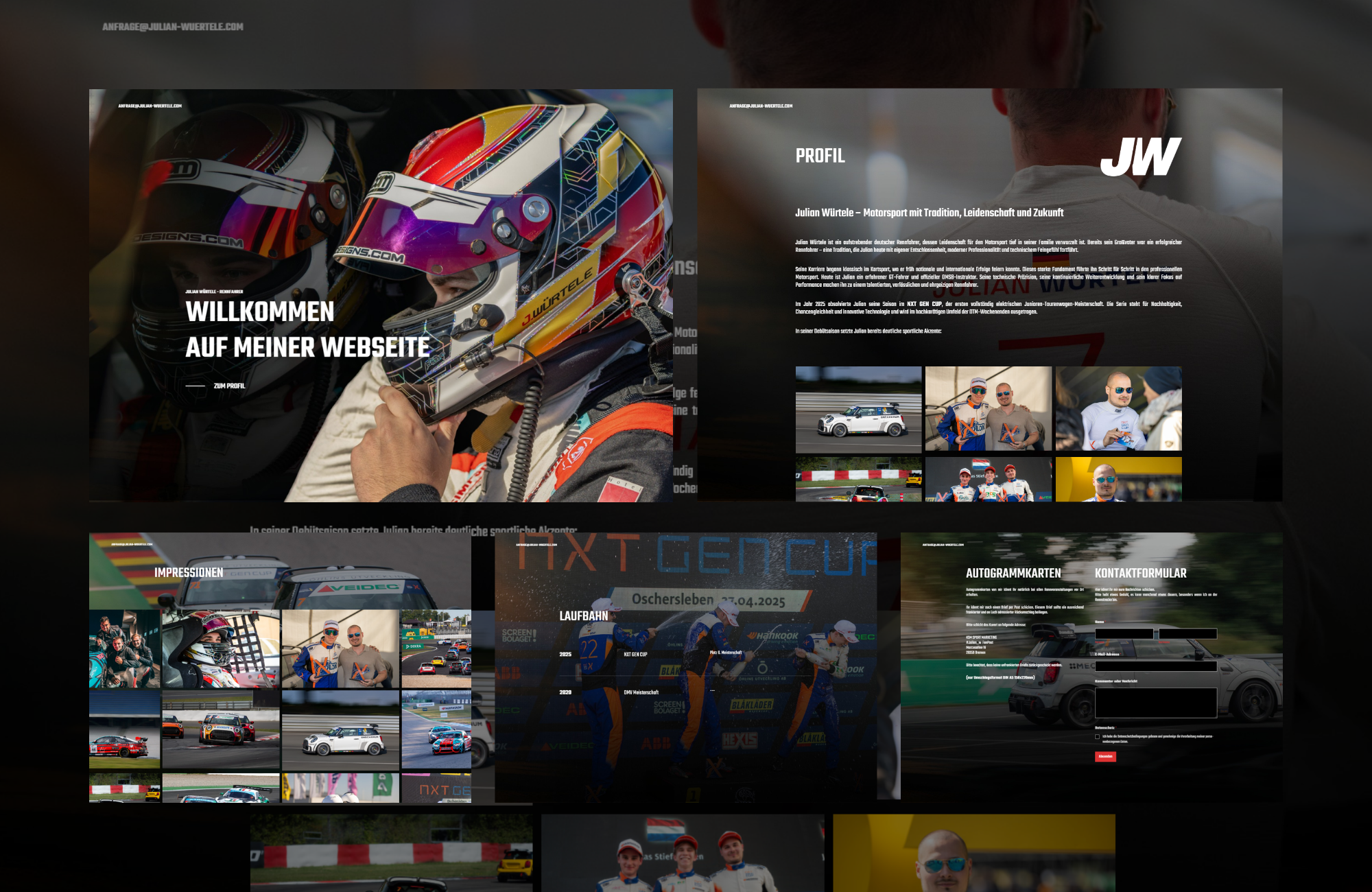 Ergänzend gestalten und realisieren wir moderne, nutzerfreundliche Websites für Sportler und Rennteams. Ob als digitale Visitenkarte, Informationsplattform oder Sponsorenpräsentation – wir verbinden Design, Inhalt und Funktionalität zu einem überzeugenden Online-Auftritt, der Professionalität ausstrahlt und Vertrauen schafft.